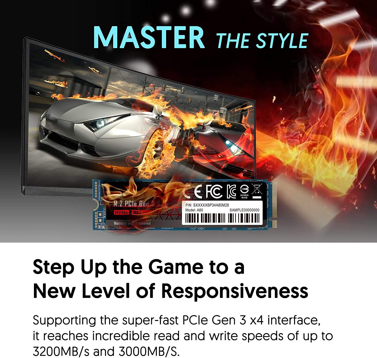 High-speed PCIe Gen 3×4 interface with read speeds up to 3.400MB/s and write speeds up to 3.000MB/s. |